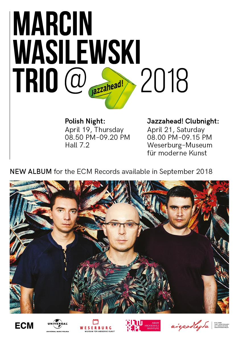 Marcin Wasilewski Trio is going to Jazzahead! 2018. While Poland is a partner country to jazzahead! in 2018 edition, Trio will be a part of the Polish jazz presentation on the 19th at the Polish Night and two days later – on the 21th April. at the Weserburg- The Museum Of Modern Art. Jazzahead! is more than a fair – it is the most important meeting place for the international jazz scene. This fair is the only one in the world to place jazz at the center of the action. As a trade event, it has long established itself firmly with industry representatives from Germany, Europe and around the Word, and offers agencies, labels, artists, media representatives, producers and organizers the opportunity to get together. The jazzahead! is a music trade fair that integrates its own showcase festival, conferences and even a clubnight in Bremen and also opens up to the general public. The more than 3,000 participants of jazzahead! hail from around 60 countries and work in the following business areas: Artists and Promoters, Bookers, Lables, Agencies, Publishers, Festival and Club Programmers, Distributors, Production Companies, Lobby Institutions, Associations & Initiatives, Press, Media and more.