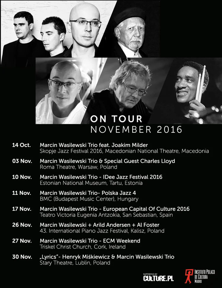 Pod koniec tej listopadowej trasy MWTrio wystąpi 27. listopada podczas Weekendu ECM w Cork (Irlandia) a także- już po powrocie do Polski- z koncertem w Teatrze Starym w Lublinie zagra z Henrykiem Miśkiewiczem materiał z albumu „Lyrics”, nagrodzonym Fryderykiem 2001 za ‚Album Roku” w jazzie.